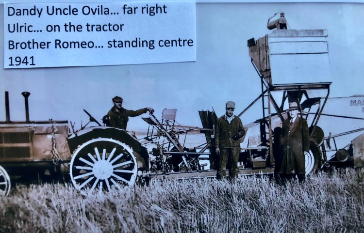 Ulric had a favorite uncle named Ovila, who spent his whole life as an office worker in Montreal. He was an enthusiastic hobby gardener. He was proud that his sister and brother-in-law had left Quebec and established a successful farm in the west. He spent many summer vacations there, enduring a long train ride to spend two weeks on a dusty, gritty western farm. He was a formal man and always wore a shirt and tie, even when visiting my dad and his brothers working in the fields. Politically, he was a staunch Conservative; the old-timers would call him a “blue man” … blue being the colour of the Conservative Party. He was a serious gardener and had a fine collection of garden tools. While away on vacation, his nephew in Montreal went to his home and painted all the handles of his garden tools red, Liberal Party red. When “True Blue” Uncle Ovila came home and discovered all his beloved gardens tools now had red handles, he was upset. Ulric loved his uncle Ovila and loved telling this story.
